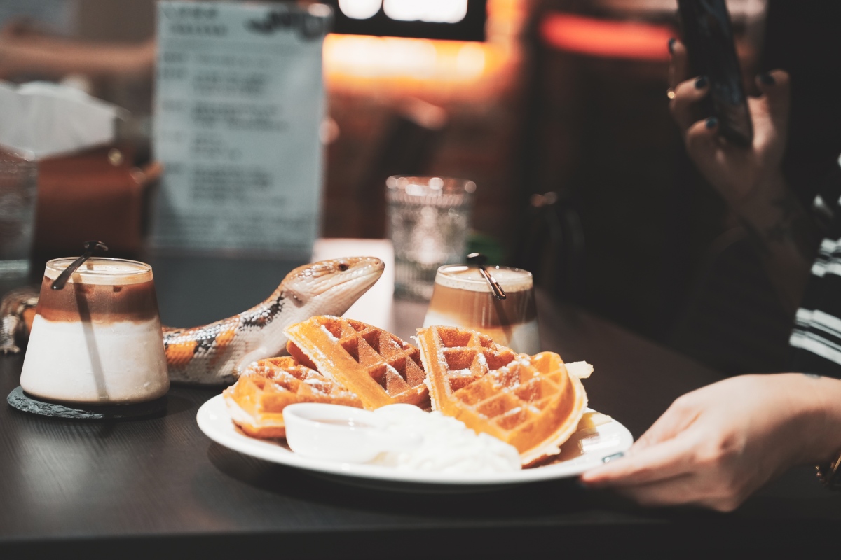 沒有吵鬧喧嘩,只有低調耍廢的爬蟲們,還有香氣四溢的咖啡與食物,完美融合療癒與趣味,也可以帶自家的爬蟲去玩耍唷!在那裡待了一下午,真的好好玩呀~部分爬寵有在販售,上面有些有標價格,大家有興趣也可以直接詢問老闆唷!