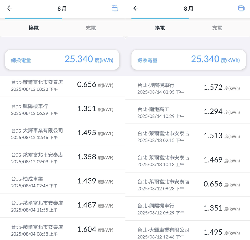 以這位使用者為例,從每日多次換電的紀錄來看,很可能是商務用車或外送族群,屬於高用量者。對這樣的使用模式來說,不管選擇哪一個電動車系統,如果搭配的是入門資費情況下,每度電額外計費自然會拉高使用成本。