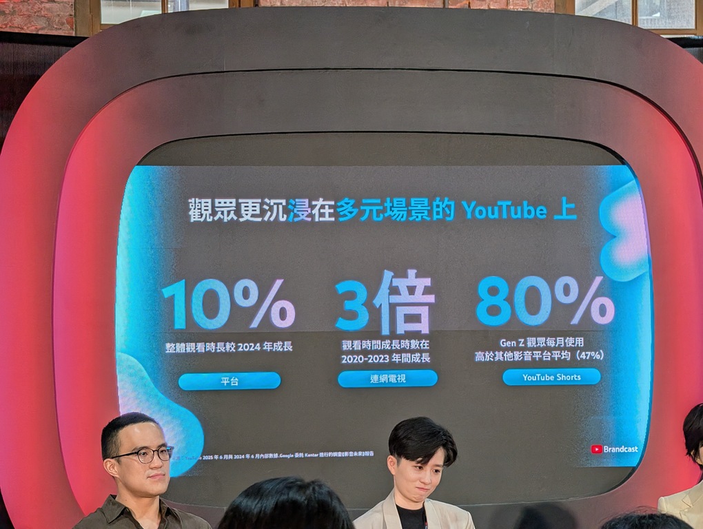 這份共鳴在年輕世代身上表現得尤為明顯。調查顯示,高達 94% 的年輕世代認為 YouTube 的內容與他們高度相關,比例遠超過其他影音與社群平台。在 Brandcast 會中,創作者 Hook 也分享了他的創作心得。他指出,許多觀眾在意的不是單向的觀看,而是能夠參與其中的感覺,因此他經常用直接而生活化的語言,讓觀眾在影片與留言互動中找到共鳴。這種真實交流,正好呼應了 YouTube 強調的「沉浸」與「共鳴」趨勢,也說明了為什麼 Hook 的影片能夠吸引大量年輕觀眾,並成為 Z 世代的重要陪伴。