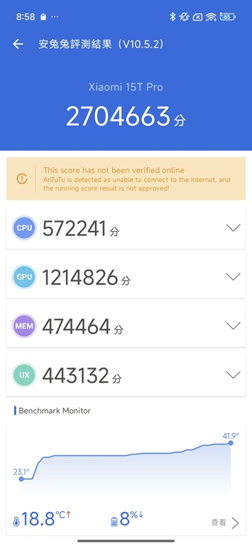 另外,Xiaomi 15T Pro 內建 Xiaomi 3D IceLoop 散熱系統,能有效控制長時間遊戲下的溫度,實測在高效能模式下連玩 30 分鐘遊戲,機身溫度控制確實不錯,手感僅有微熱,完全到不了燙手的程度。