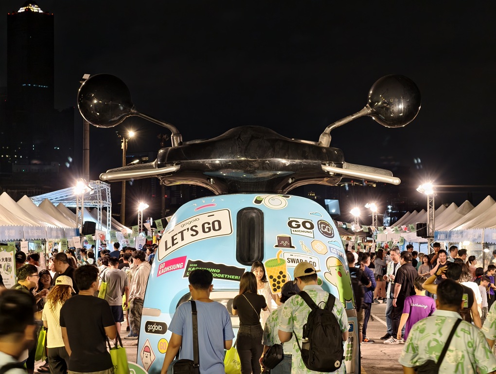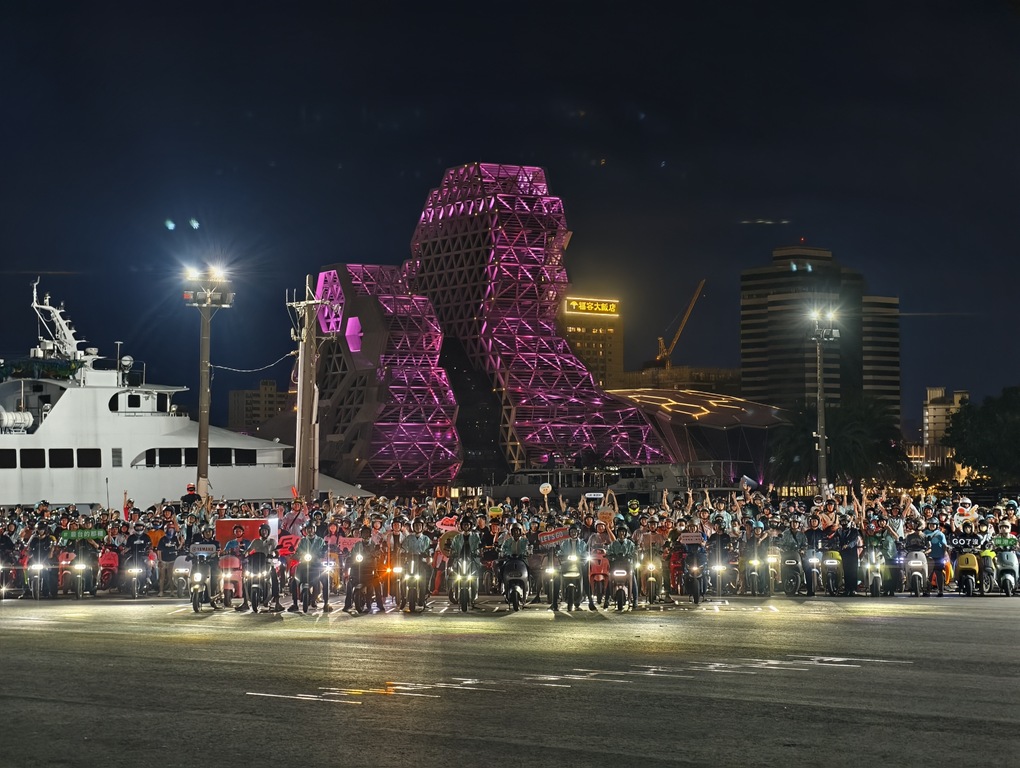 夜晚活動高潮莫過於「千人電動機車夜騎」的登場。隨著夜幕低垂,上千輛 Gogoro 及 PBGN 機車陸續集結於高雄港邊,從大港倉出發,以龐大車隊之姿穿梭於港灣與城市街道之間。這場夜騎不僅是壯觀的視覺體驗,也象徵城市智慧交通的發展方向與大眾對環保交通方式的認同。