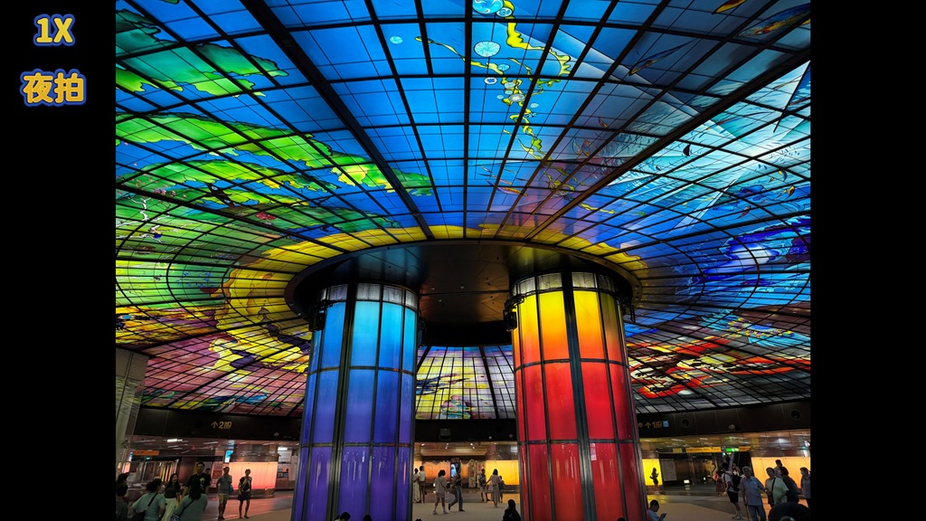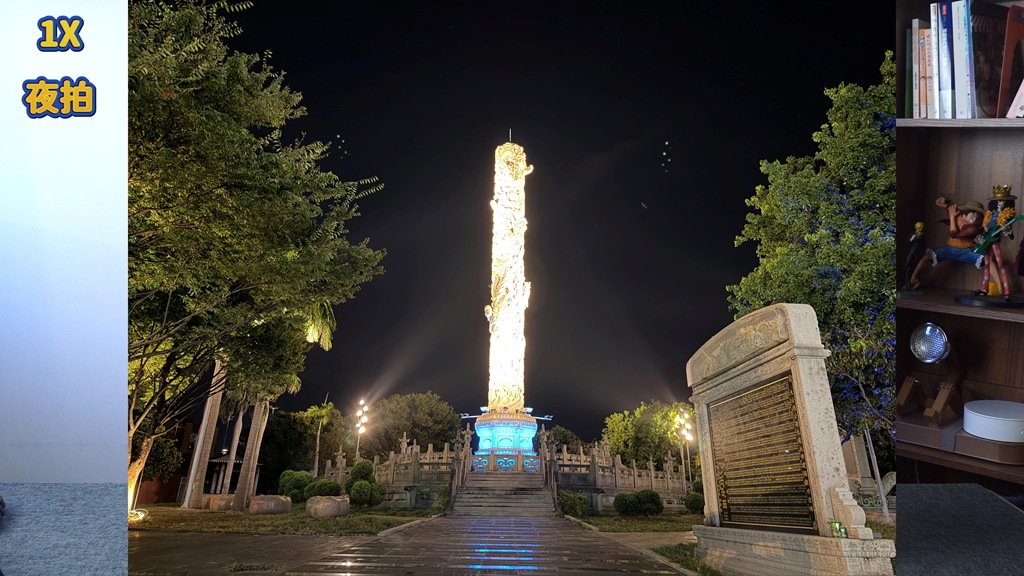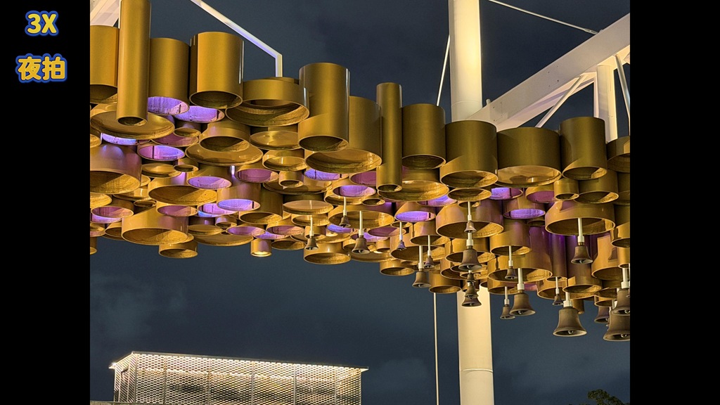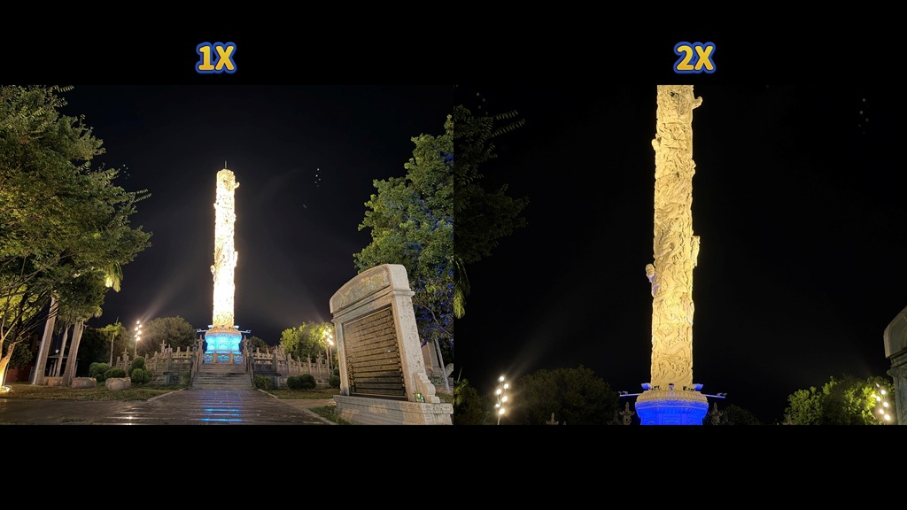 有趣的是,夜拍下,當發光物面積較大時,原本在 1X 會過曝的物體,看起來就好很多。