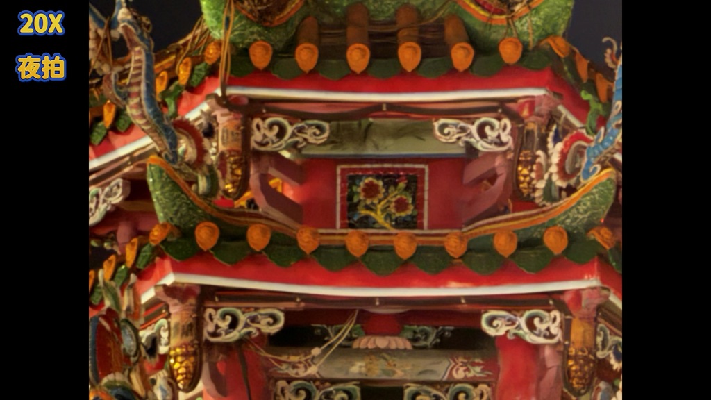 夜拍部分,10X 也算是可以接受的程度,不過在 20X 以上,所有環境下表現都會讓你明顯感到細節不足的狀況。