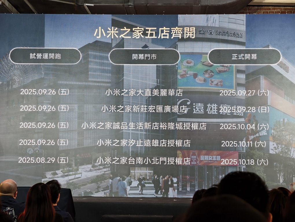 為了讓更多人能親自體驗小米智慧產品,小米同步於五地開設新門市,包括台北大直美麗華、新莊宏匯廣場、新店裕隆城、汐止遠雄與台南小北門等地,全數進駐大型百貨或購物中心,打造開放式的智慧體驗空間,提供試用、諮詢與售後服務一站式支援。