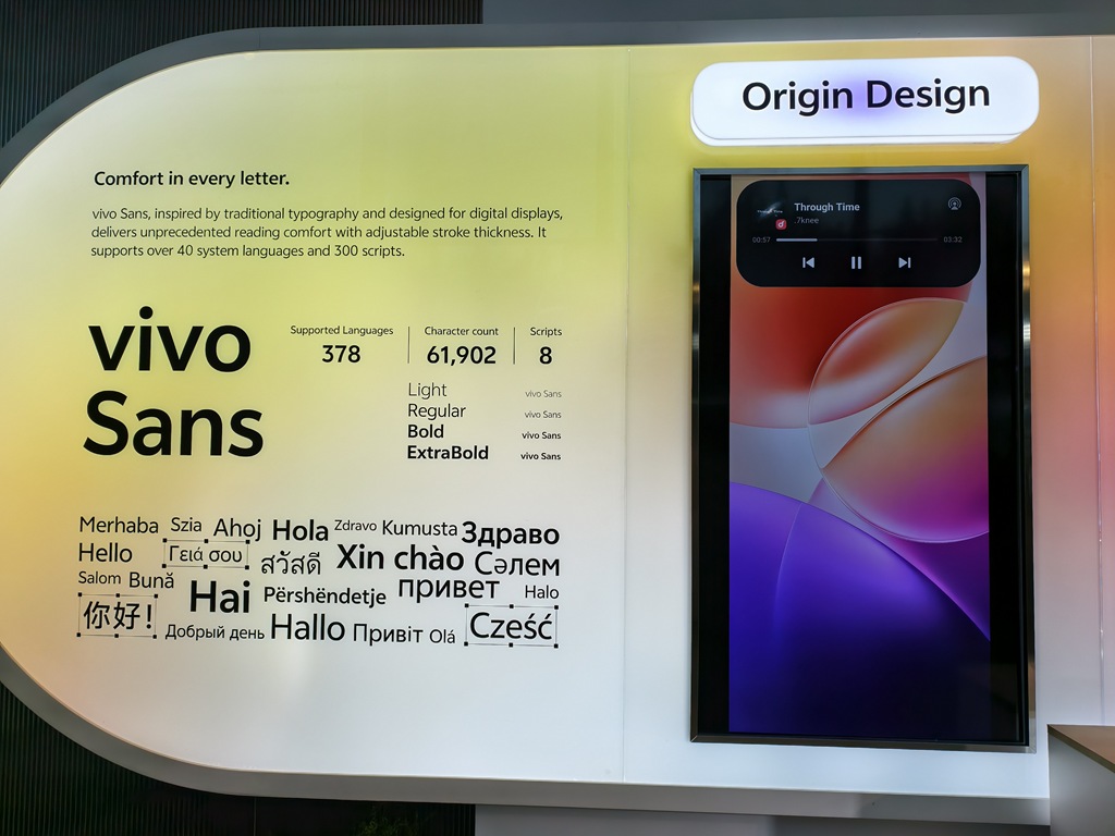 新系統採用 Origin Design 視覺架構,以簡潔、平衡的設計語言搭配 vivo Sans 字型,支援 40 多種語言並可微調字重,提升閱讀舒適度。介面動態以光影變化為主軸,搭配通透的色彩設計,使畫面更具層次。