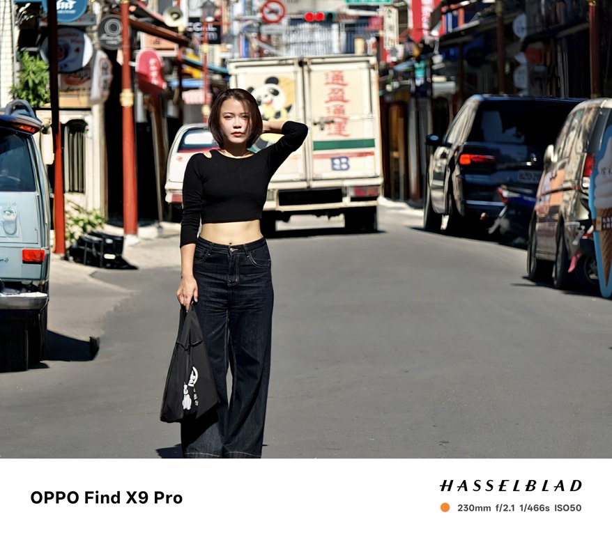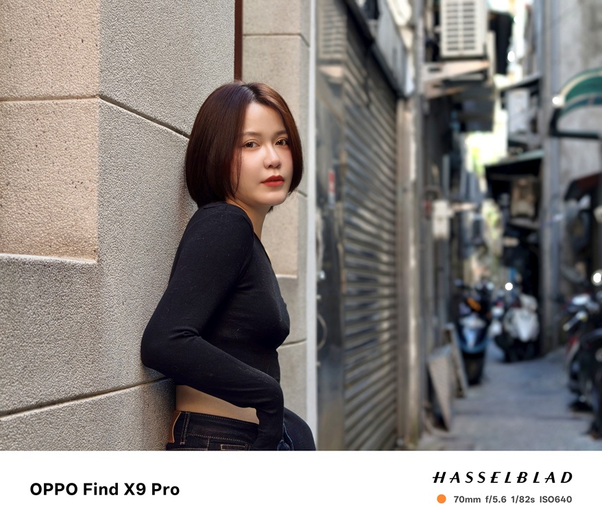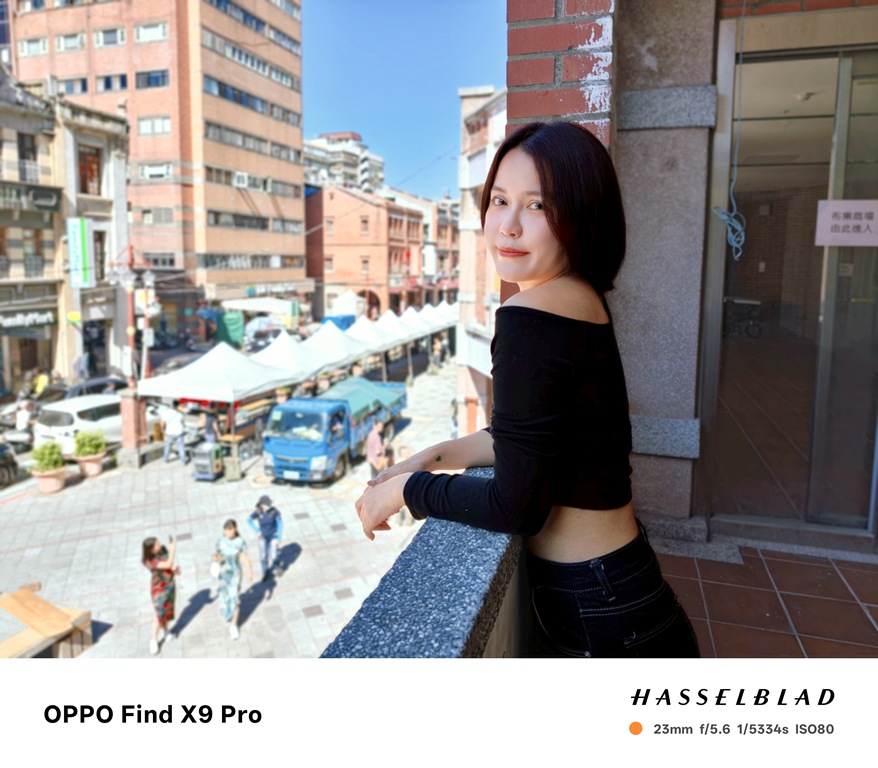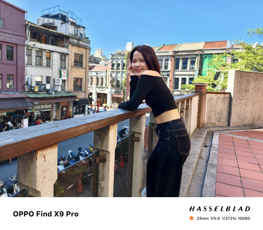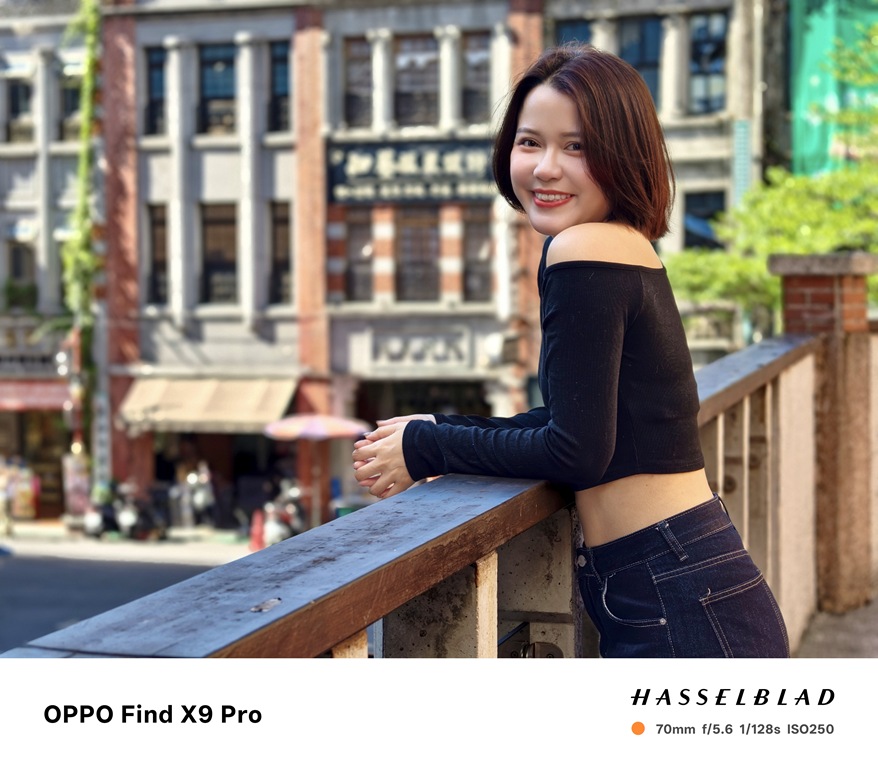 哈蘇人像模式是另一個不能錯過的亮點,無論是站在日式巷弄、復古街角,還是旅館陽台,Find X9 Pro 都能拍出背景層次分明、光斑柔和的人像照片。背景虛化過渡細緻、髮絲不糊成一團,膚色演算也特別討喜,還能保留自然的膚質細節。