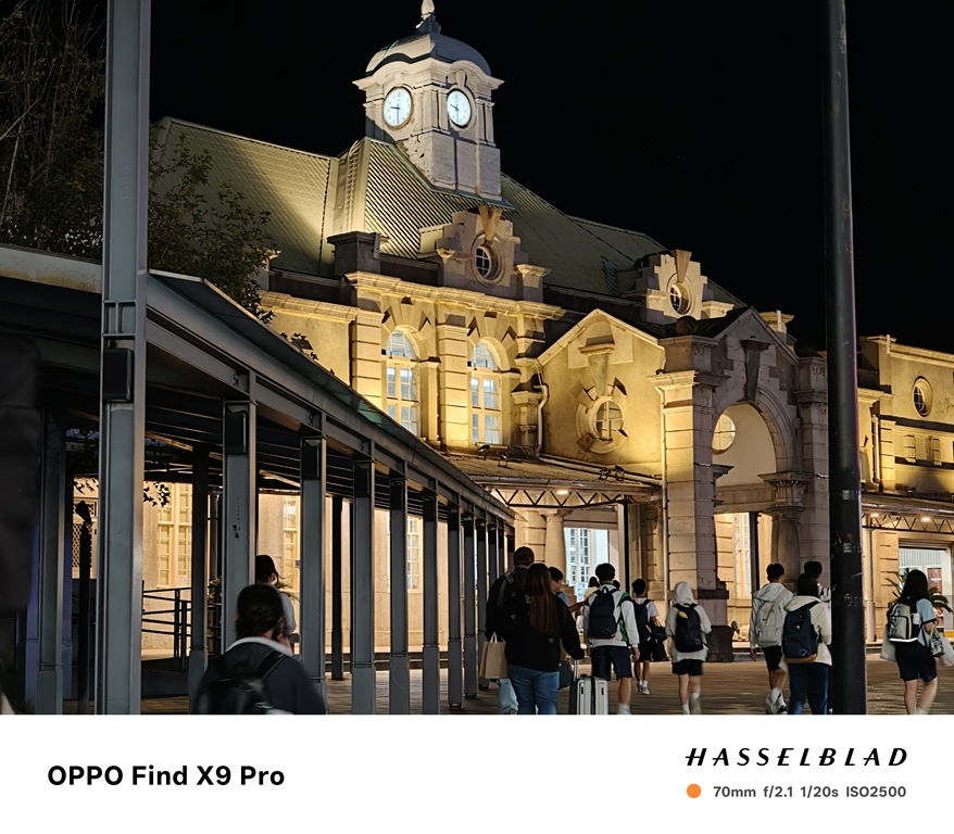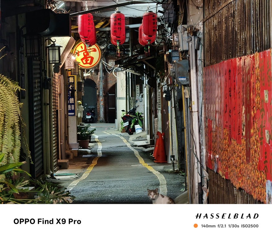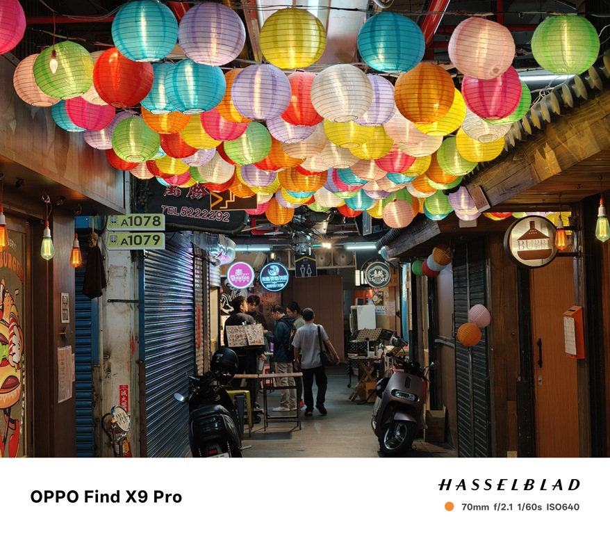 在夜晚時,五彩繽紛的燈色,不只我們看得眼花撩亂,鏡頭更是,但 OPPO Find X9 Pro 卻能拍下當下準確的色彩。除了三鏡頭外,還有一顆有趣的原色真彩鏡頭,透過 48 分區感應技術與 9 通道色彩資料,能針對畫面中不同區塊進行色溫校正,最大限度還原人眼所見的真實。而這樣的能力,在夜拍中完全展現。
