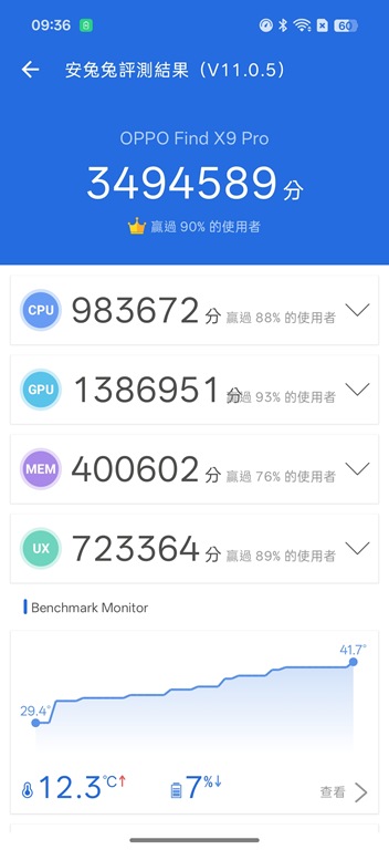當然在效能部分也是旗艦級水準,OPPO Find X9 Pro 採用聯發科天璣 9500 處理器,搭配 LPDDR5X 記憶體與 UFS 4.0 儲存規格,整體效能在旅途中的高強度使用下也毫無壓力。從高解析度相片後製、影片剪輯,到多工切換、AI 辨識整理,操作起來順暢快速,幾乎沒有等待。特別是在旅途中拍攝完一連串照片後,馬上用手機剪接成旅遊短片或修圖分享,這樣的效能就是最實在的需求。