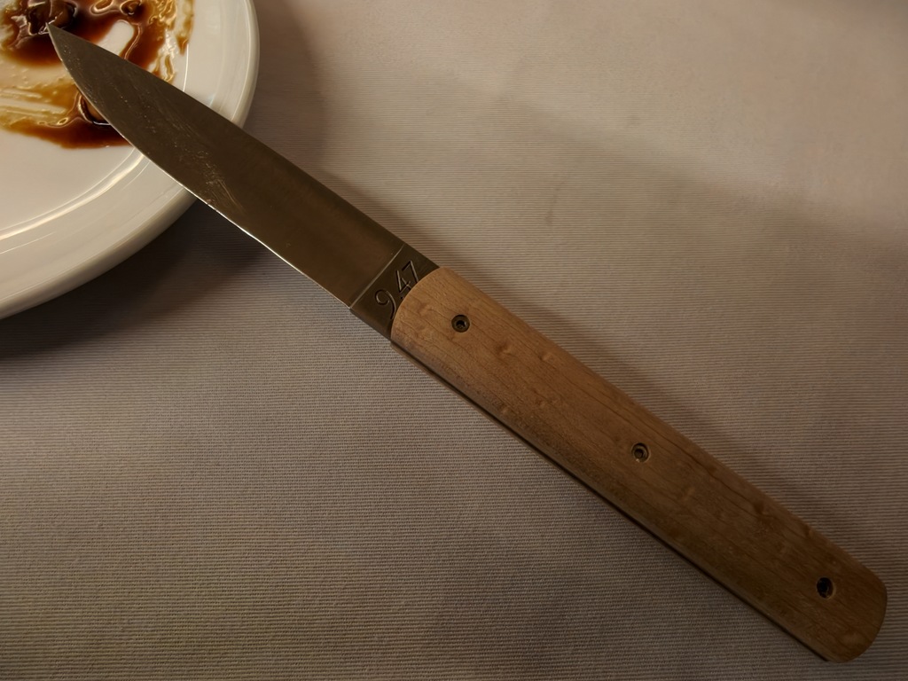 對了,不得不讚美一下餐廳的細心,居然用上了知名主廚 Yves Charles 所設計的 9.47 牛排刀,鋒利程度讓你完全不用費心切牛排,放上去輕輕一劃,就完美切開。