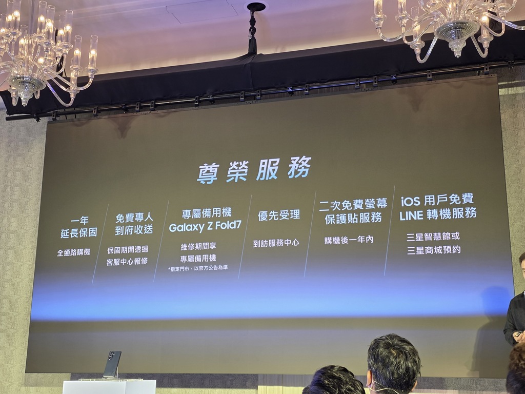 在台灣上市版本方面,Galaxy Z TriFold 提供單一瀚夜黑配色,規格為 16 GB RAM 與 512 GB 儲存空間,具備 IP48 防水等級。盒裝內容包含碳纖維保護殼與 45 W 旅充,並於全台多處三星指定門市設置展示體驗。台灣售價為  89900,並享有尊榮服務。