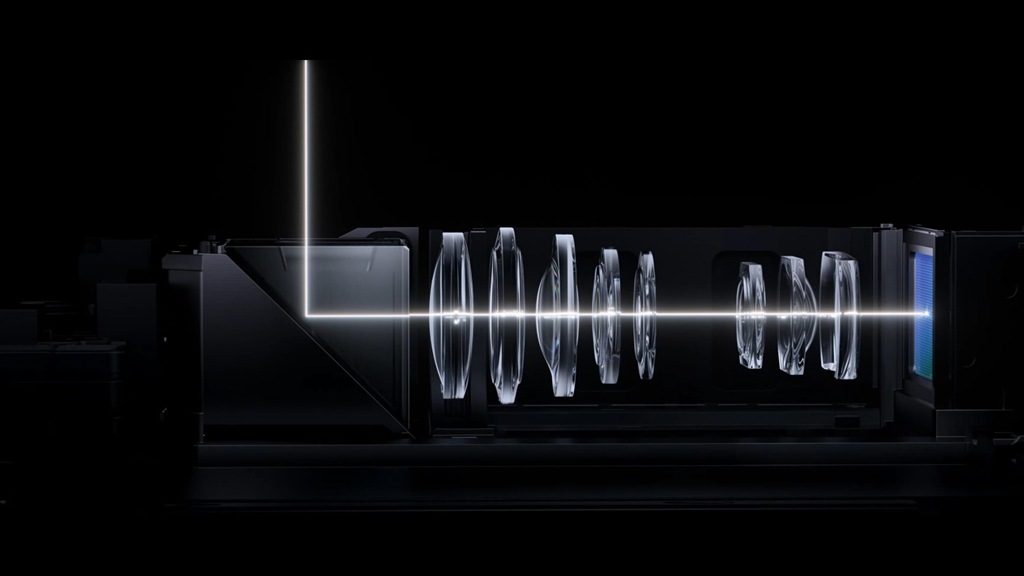 發表會也提到其作法是利用浮動鏡組的概念:潛望式長焦的多片鏡片分組,其中一組固定、另一組可移動來改變焦距,並搭配對焦鏡組完成成像。