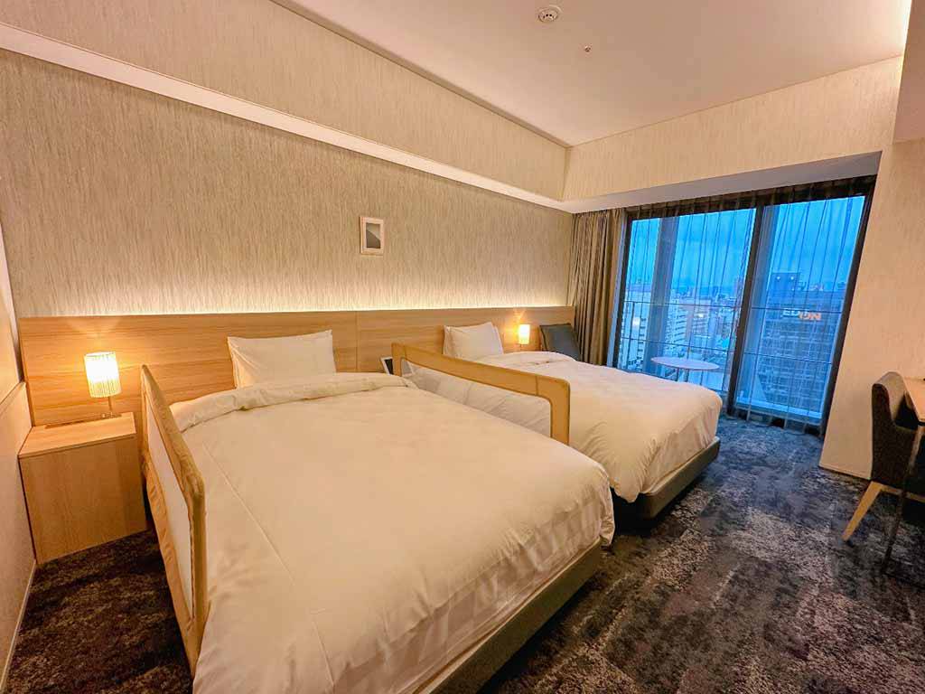 客房規劃以實用性與舒適度為核心,房型從 25 平方公尺起跳,在大阪市區飯店中屬於相對寬敞。房內多採 乾濕分離設計,洗手台、淋浴間與廁所各自獨立,動線清楚,並配置免治馬桶與完整備品。除一般客房與套房外,飯店也規劃少量 AUDIO 套房,鎖定對音響設備有高度需求的旅客,展現不同於一般城市飯店的特色定位。