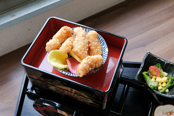 一份大寶輪裡有三大主角,分別是:「炸魚排」現炸魚排外皮酥脆,完全沒有腥味,搭配美乃滋更是完美。「日式燒雞」溫體雞肉先微烤再爆炒,外層裹著鹹甜交織的照燒醬,微微焦香、雞肉保留軟嫩口感。「高湯嫩蛋」帶著高湯香氣與淡淡甜味,口感不錯!搭配湯品、沙拉、小菜和白飯,整套吃完超有飽足感。