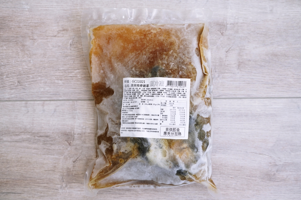 ▼「愛上新鮮 × 型男主廚-吳秉承 黑蒜烏骨雞湯」包裝實在、食材清晰可見,份量很有誠意。只要加熱就能享用,對忙碌者超友善。