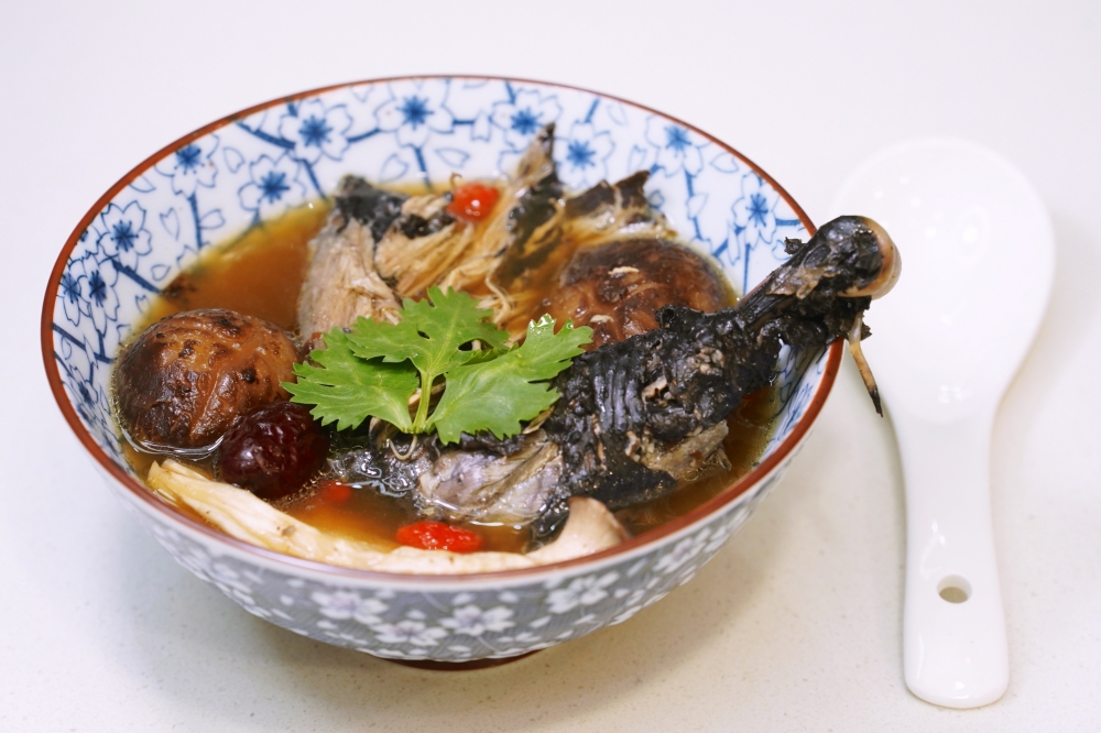 ▼盛ㄧ碗上桌,熱氣裊裊升起,更像現煮慢燉的家常補湯。烏骨雞的肉質一撥就散,柔嫩細緻完全吸收湯頭精華;香菇飽滿多汁、紅棗煮到軟甜,枸杞在湯底裡點綴出自然甘韻。上面再放上一小撮香菜,瞬間讓整碗湯多了清新的香氣層次,也更有家的味道。