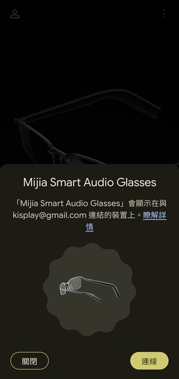 在連線部分,米家智慧音頻眼鏡支援 Google Fast Pair,第一次配對 Android 手機時會自動跳出視窗,設定流程相對單純。它也支援雙設備連接,實際使用上可以同時連手機與筆電:在筆電開線上會議的時候,如果手機有來電,眼鏡會優先切到通話,掛掉之後再回到電腦的音訊,這點對整天在兩個裝置間切換的使用者來說相當實用。