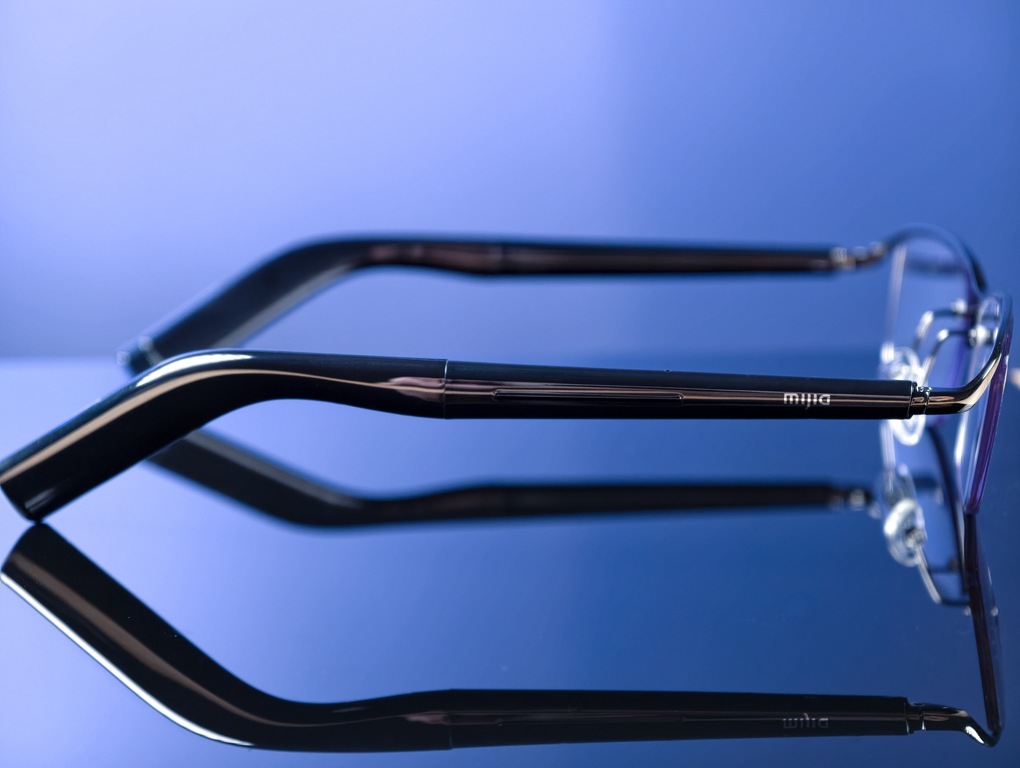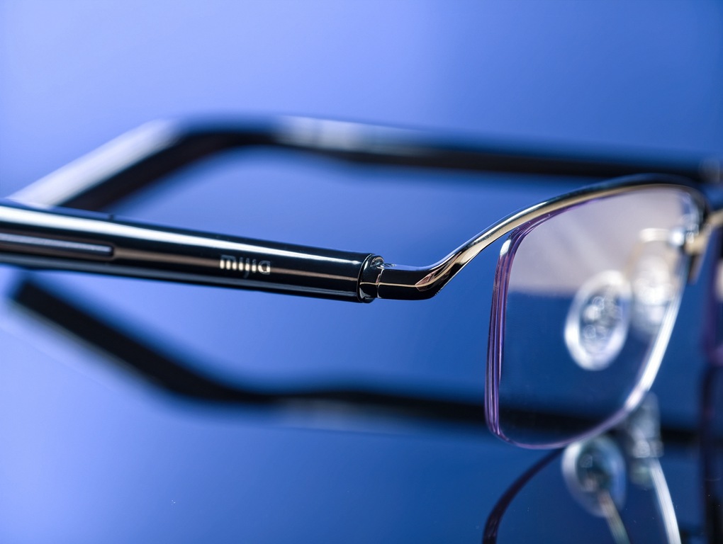 β 鈦本身的彈性與韌性,比一般金屬更適合做長時間配戴的鏡框,加上一體成型結構,整體線條很俐落。鏡腳最薄處只有 5 mm,比上一代 Xiaomi 智慧音頻眼鏡更細也更輕。原廠鏡片採用抗藍光設計,作為工作看螢幕也很實用。