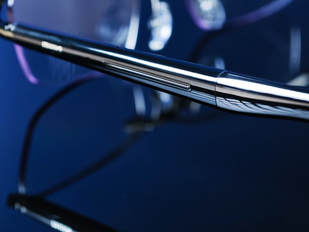 深空鈦款是最低調的一款,採用 β 鈦金屬一體成型設計,不含鏡片只有約 27.6 g,如果是用原廠鏡片為 34.4g,是其中最輕盈的一款,外觀看起來就像一副乾乾淨淨的金屬框眼鏡。