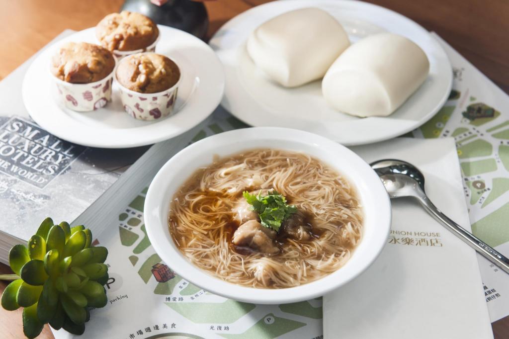 早餐供應在一樓的「THE Diner」餐廳,提供自助式餐點、在地特色菜與西式熟食,還吃得到鹿港名店「阿振包子」、麵線糊等小吃。菜色不花俏但很用心,每一道都吃得出食材的新鮮與溫度。餐具也選用杜拜皇室喜愛的RAK Porcelain瓷器,整體用餐質感大加分。