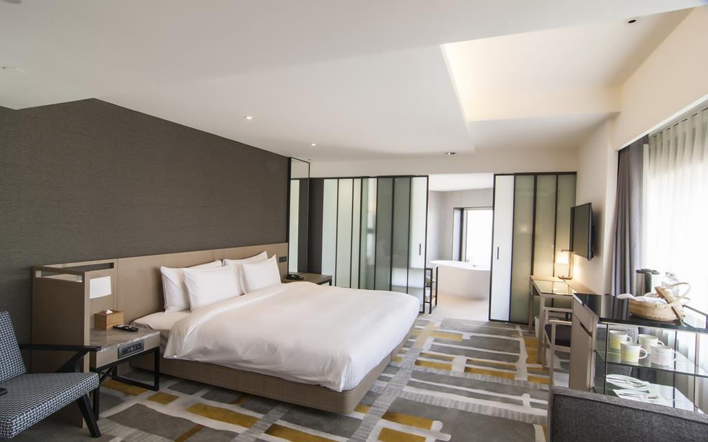 房型部分推薦「豪華客房」以上等級,有設計感的木質調裝潢搭配臥榻區,在窗邊發呆、喝茶看街景非常療癒。房內有蛋形浴缸和乾濕分離淋浴,泡澡超舒服。冰箱內飲料免費喝、熱水壺、保險箱、冷氣、毛巾牙刷等備品也都齊全。如果是家庭旅遊,也可以選擇十宜客房或永樂家庭房,四人入住空間寬敞不擁擠。
