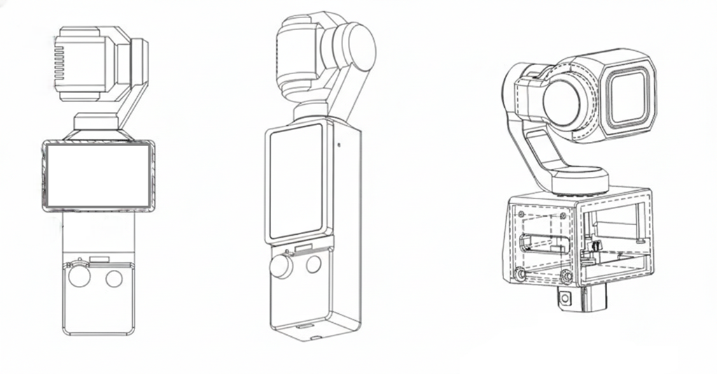 從目前流出的專利與設計草圖來看,vivo 的 Pocket 攝影機將採用一體式三軸雲台結構,上方為相機模組,搭配可旋轉螢幕,下方則是握把機身,整體造型與 Osmo Pocket 相近。傳聞重量將控制在 200 g 以下,維持輕巧便攜的產品定位。專案團隊規模約 100 至 200 人,顯示這並非短期嘗試,而是有明確規劃的產品開發。