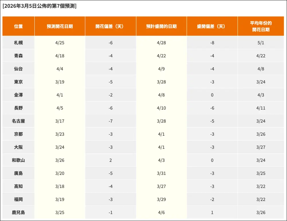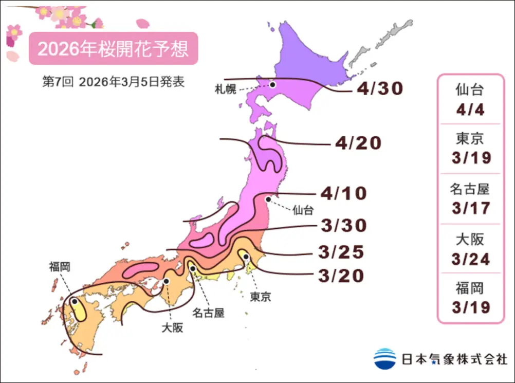 現在制訂日本賞櫻計畫,大家絕對不能照著舊習慣走。受氣候變遷影響,2026日本氣象株式會社公佈的數據呈現「北提早、南持平」的趨勢。