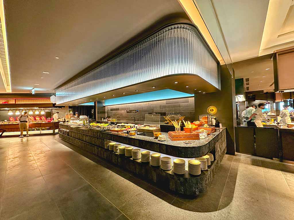 餐飲實力一直是漢來的強項。館內設有6間餐廳,其中最受矚目的莫過於「島語自助餐廳」。該餐廳以「一餐檯、一Fine Dining」為核心概念,早餐時段便搜羅全台人氣美食,房客可享用現燙牛肉湯、台南虱目魚肚海鮮粥、黑松露肝醬以及進口氣泡酒無限暢飲,堪稱台北最強飯店早餐之一。
