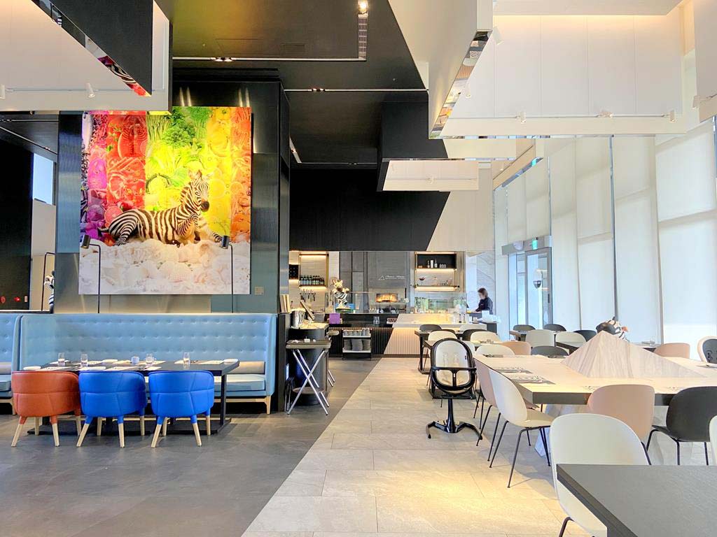 早餐絕對是入住大毅老爺行旅的亮點。位於一樓的 ZEBRA 義大利餐廳,以斑馬標誌性的黑白對比色為裝修風格,並提供室內與室外綠意空間供選擇。