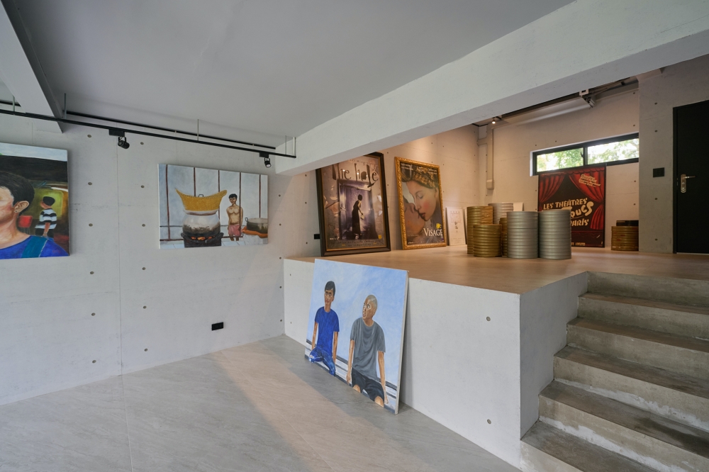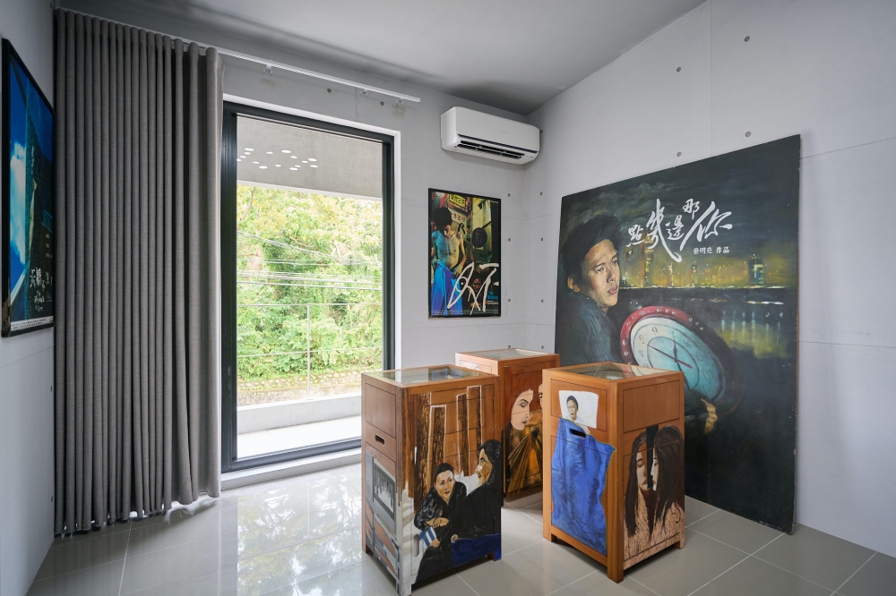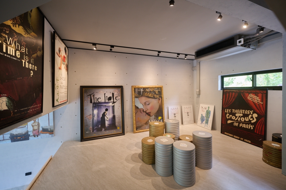 牆面上可以看到熟悉的電影海報,從《The Hole》到《What Time Is It There?》,旁邊則擺放著一疊疊的膠卷鐵盒。這些元素並沒有被過度整理或包裝,反而像是創作過程留下來的片段,被原樣保留在空間裡。