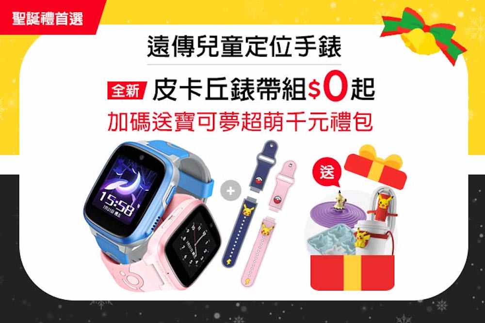 遠傳獨家推出寶可夢聯名的「全新皮卡丘錶帶組」,錶帶上有超萌的皮卡丘、精靈球圖案,孩子們載上後可愛指數破表!現搭配「遠傳兒童定位手錶方案」月付 399 元、約期 36 個月方案,耶誕優惠價只要 0 元,再享上網吃到飽、網內通話免費;耶誕加碼再送禮包二選一,有超萌的「寶可夢超萌千元禮包」,內含寶可夢製冰盒、杯蓋、杯綁等,還有 12 月推出限定版的「貓福珊迪暖心禮包」,內含保溫杯、飲料帶、環保餐具,禮包價值通通超過千元以上!不論是喜歡寶可夢或是貓福珊迪孩子們,都能選擇到最喜歡的耶誕加碼禮! 讓孩子在耶誕節收得開心,父母送得安心且守護更放心。