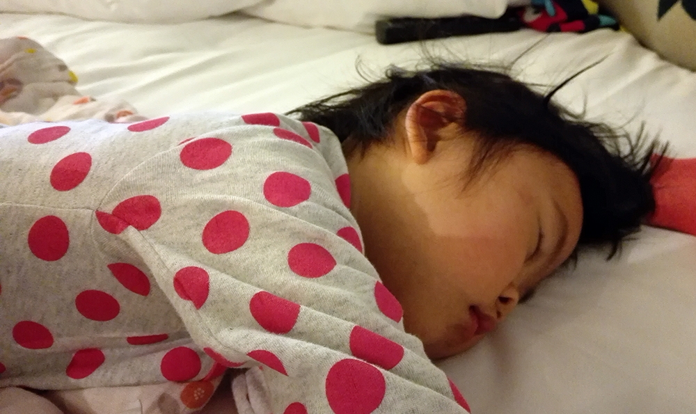 由於以上尺度太大,就不細細寫下去了。礁溪溫泉屬於含有碳酸氫鈉的「鹼性泉」,這樣的弱鹼性對皮膚有很棒的滋潤功能還有軟化角質的效果,所以又稱為「美人湯」囉!泡完摸摸皮膚,你就會有滋潤又滑滑的感覺。泡完換個衣服因為太舒服了,小寶貝就這樣睡著了(泡溫泉果然超助眠)