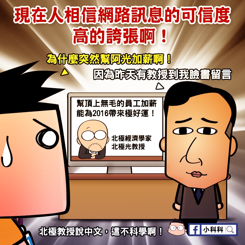 網友設計的這張「假名言圖」其實在很多粉絲團還滿常見這種類型的圖,分享數和留言數也很高,但網路上流傳的圖片和言論真的要小心,不然你也會成為網路社會實驗的犧牲者…