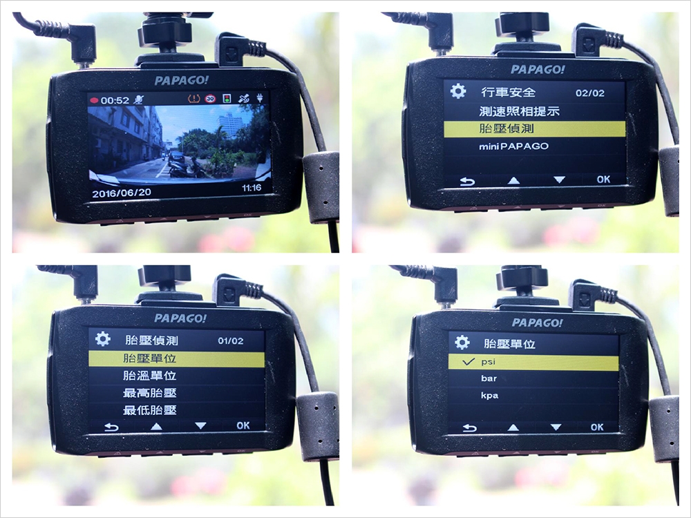 GoSafe 51G 不只是行車記錄的功能,更支援了胎壓偵測器,只要另選購安裝 PAPAGO! TireSafe D10E 胎外式胎壓偵測支援套件就可以了。