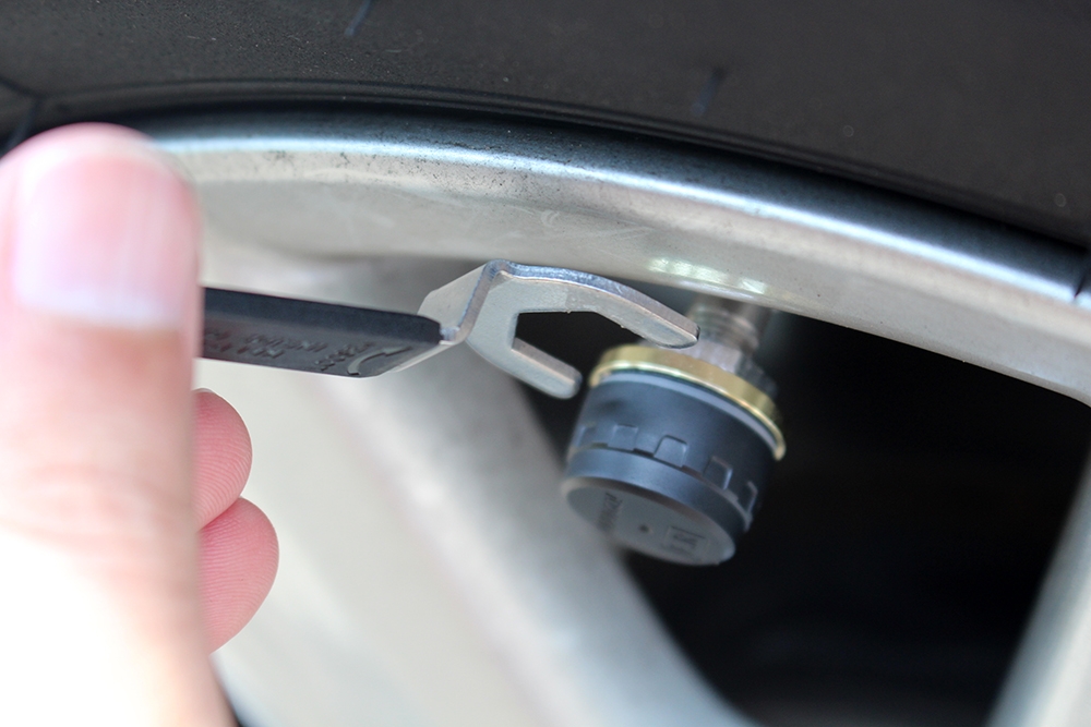 接著利用提供的工具,把四顆感應器裝在輪胎上。
