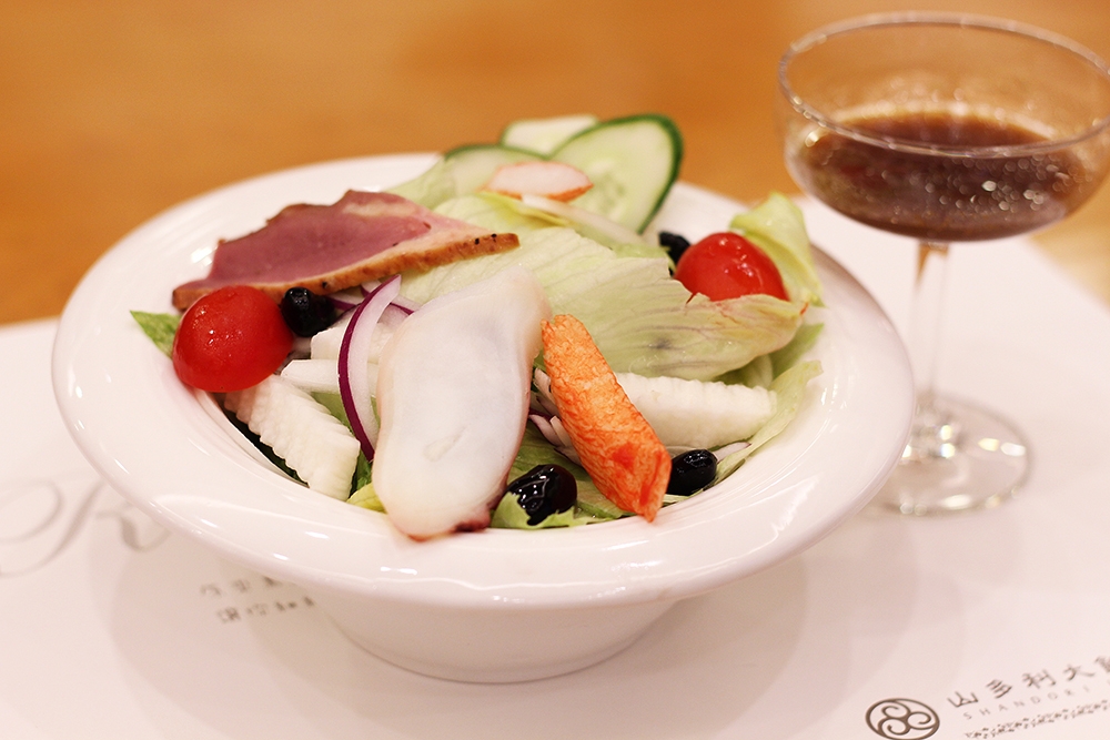 大大盤的和風沙拉清爽好吃,裡面的料比我想像中的還豐富,除了宜蘭有名的鴨肉外,還有新鮮的花枝陪襯,有滿滿爽口的鮮甜味(而且這個份量也太大了)