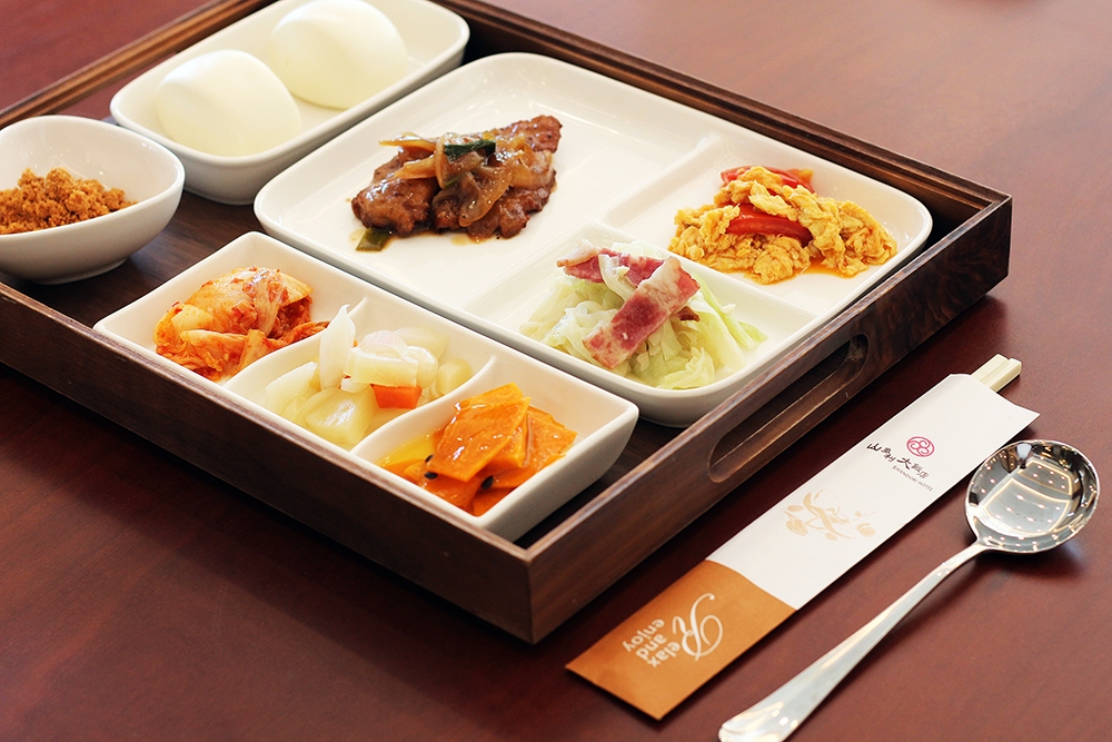 從營養榖片、高麗菜、小饅頭到類似打拋豬肉的主菜都不錯吃。