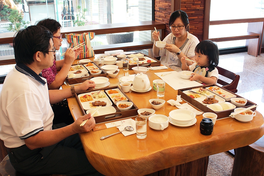 到昨天吃晚餐的地方用早餐,早晨搭配淡淡檜木香真的很棒。