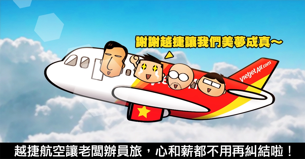 好啦!不要亂畫了,這個景氣真的不能強求了,像老闆在計畫員工旅遊時,其實也是滿糾結的,雖然辛苦了一整年,但實際上真的沒賺這麼多嘛!還是來趕快幫公司找一個不錯的員旅解決方案吧!話說越捷航空從 2011 年開始營運,主要定位是廉航的方式,目前有提供直飛台北 – 胡志明市/河內、台南 – 胡志明市,在今年 12/12 將開通高雄 – 胡志明市,到 2017/1/15 開通台中 – 胡志明市,所以從台灣去那邊玩真的不用再奔波到中正機場了,北、中、南的民眾都可以輕鬆直飛越南囉!