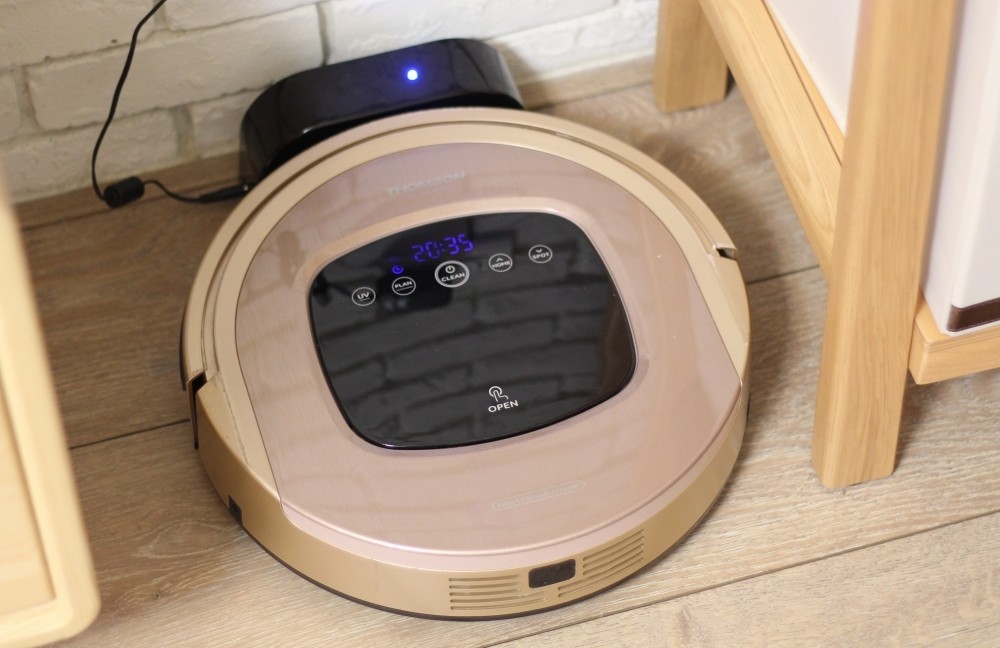 簡單佈置一下 THOMSON 的「家」,其實也只是把充電基座接上電源而已,第一次用的話記得先充電滿 12 小時,充滿之後機器人會自動語音說「Charging Complete」,表示充電完成,我可以開始工作了。