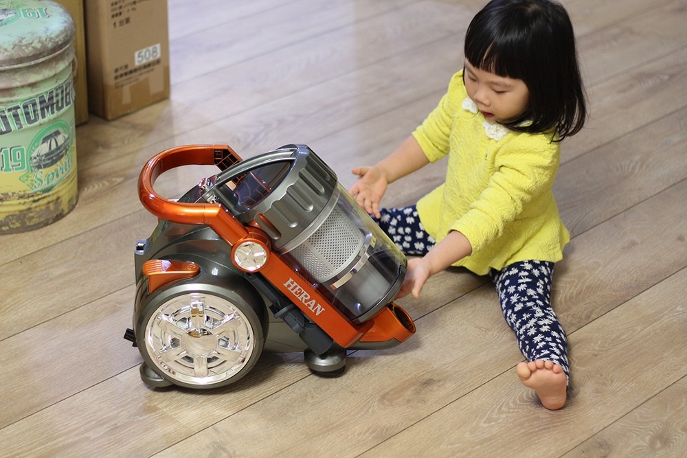禾聯 HERAN EPB-460 的五孔式氣旋杯設計,運用多孔離心力處理灰塵而且吸力不減,清掃真的輕鬆寫意,讓小妹妹幫我做家事好了(喂)