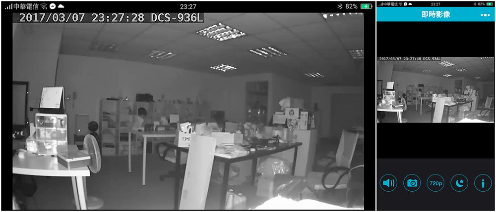 而且隨時都能在遠端透過手機監控,HD 高解析度即時影像相當清晰。
