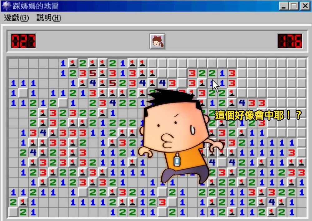 突然想到好久以前微軟 Windows 的「踩地雷」這個老遊戲(我的天啊我好老),有時候這個遊戲玩久了,你大概也知道哪裡會出現地雷,媽媽就像那些數字一樣會透露出地雷就在附近,「專業的把拔」通常會把事情做好,同時兼顧老婆的情緒,減少爭吵和抱怨,自己又能多了些時間去休息、去做自己的事,這樣才是長久之計啊!