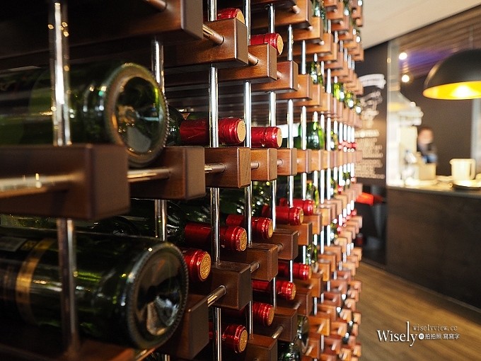 內部空間不算大但是裝潢相當有特色,光線從門口紅磚透入,而開放式吧台正對著紅酒牆面,木質桌面搭配綠意燈飾,感覺相當地漂亮,而且服務也滿不錯的。