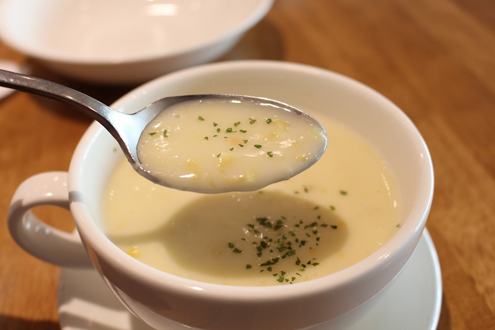 想說恰嫂是這個月的壽星,就來嘗試點這個套餐試試看,因為以前我們都是點個義大利麵和 Pizza 一起 share 來吃,今天就來點特別的吧!前面的主廚湯品算是滿不錯的,細緻又濃醇香。