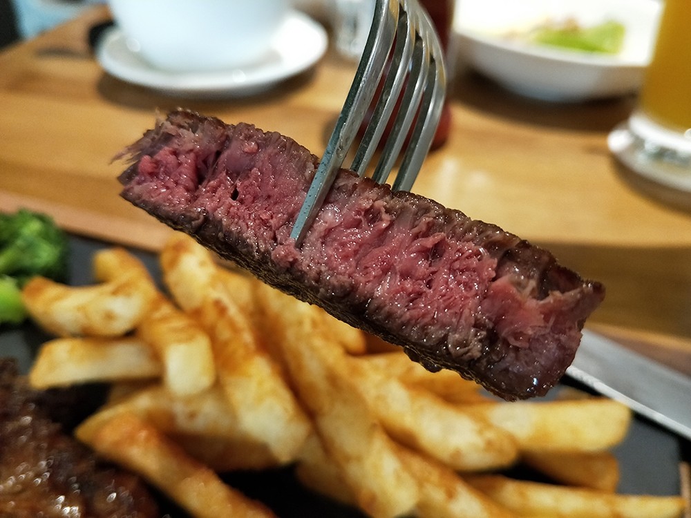 厚度很剛好,而且汁很多,一口咬下去可以品嚐到肉的鮮甜,他們真的滿會烤的,因為肉汁分布的也很均勻,每一口的味道都不會跑掉,超推!!!