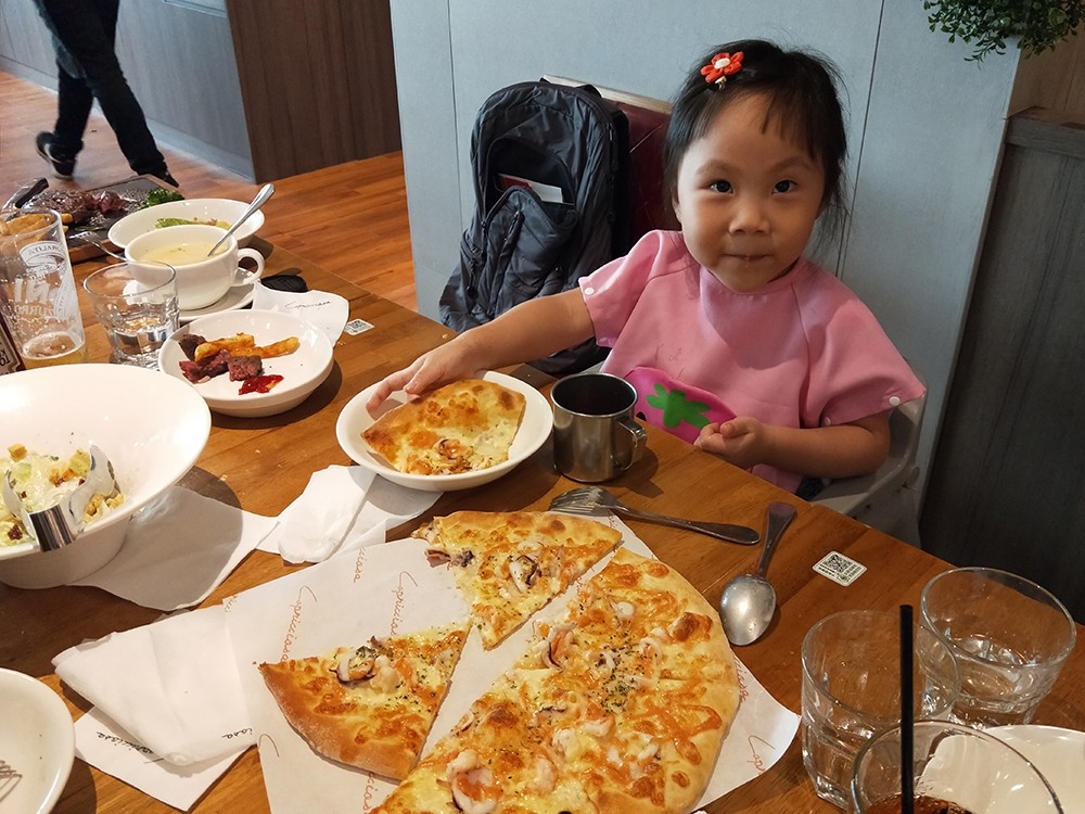 當然我們四大兩小不只吃了這樣,還加點了幾個推薦給大家的料理!我們另外也幫第一次來的岳父和岳母點了餐點,他們也吃得很開心!他們是吃義大利麵搭配披薩的雙人套餐。