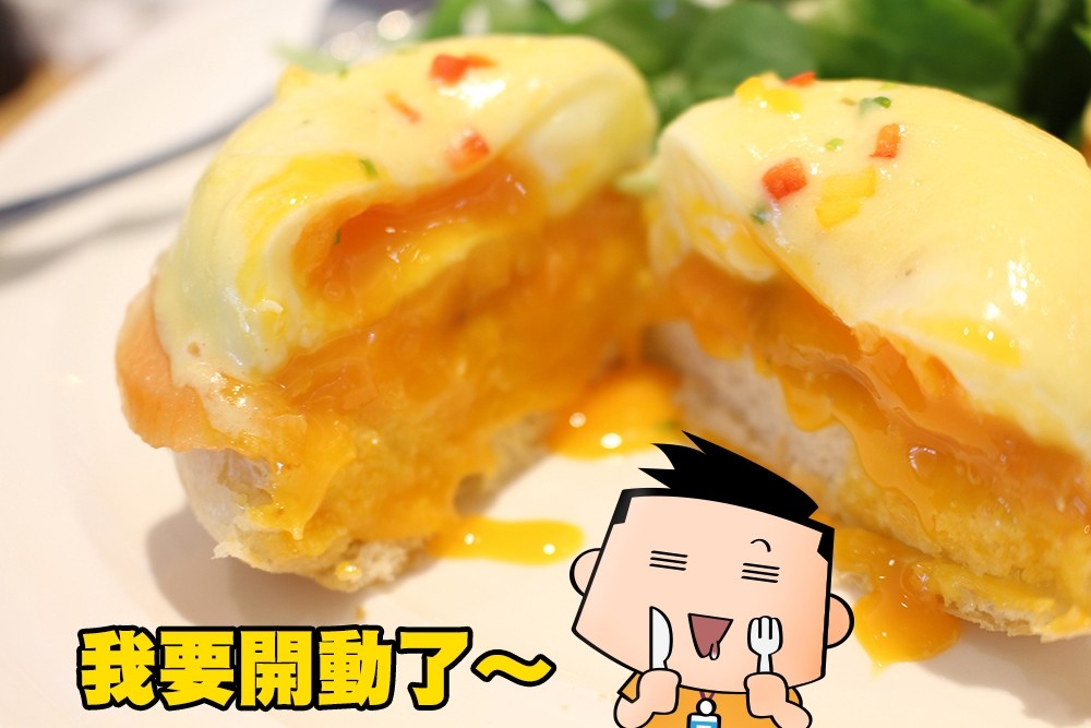 飽滿的水波蛋外層真的很嫩耶!與煙燻鮭魚一口咬下去真的覺得口感豐富又濃郁,大推啊!