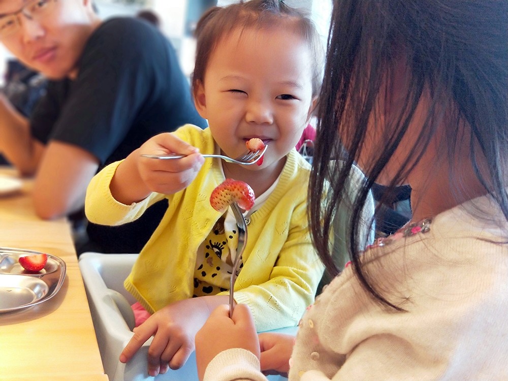 才剛端上來,小妹妹又想要來吃一口了!