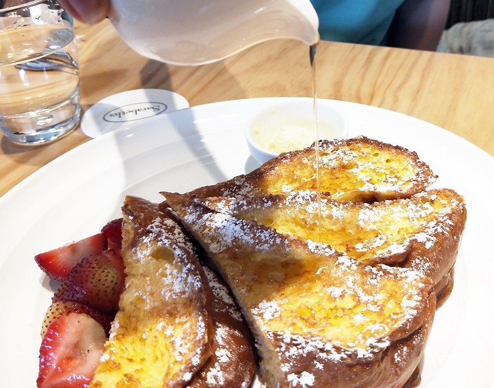 草莓和法式吐司就是要淋上楓糖啊!太搭了啦!