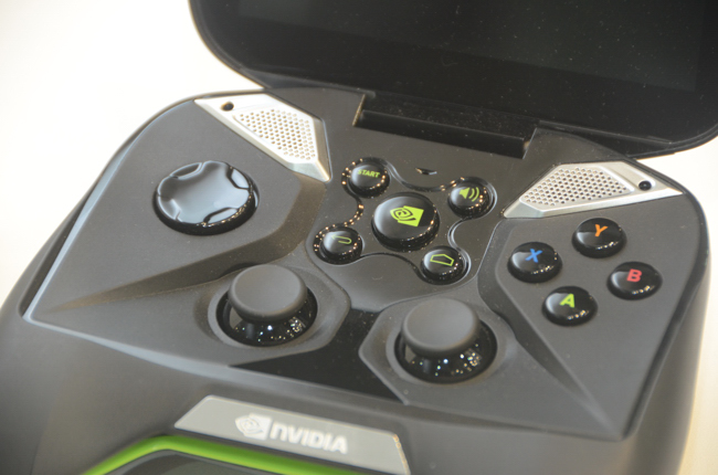 Project SHIELD 可以在開放式平台運作,外觀看起來就像個一般的 Game pad 或是掌上遊戲機,配有一個翻蓋式的 5 吋 Retina Display 螢幕,搭載 Tegra 4 處理器,真的也是台配備很強的遊戲機。